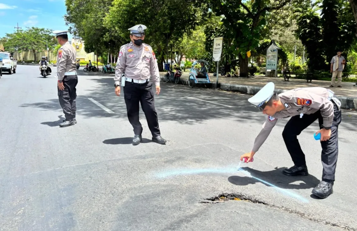 Satlantas Banyuwangi Sisir Jalan Berlubang di Pusat Kota, Cegah Kecelakaan Sejak Dini